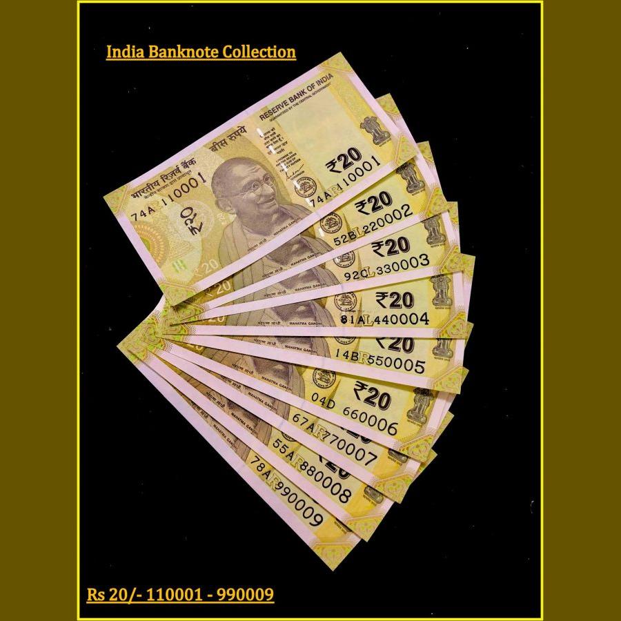 Rs 20 INDIA BANKNOTE SET 110001 – 990009 GEM UNC UNIQUE