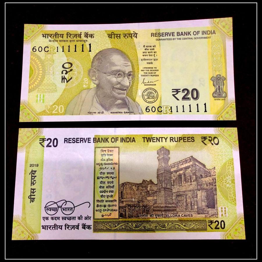 Rs 20 INDIA BANKNOTE SOLID NUMBER 111111 GEM UNC LATEST ISSUE UNIQUE