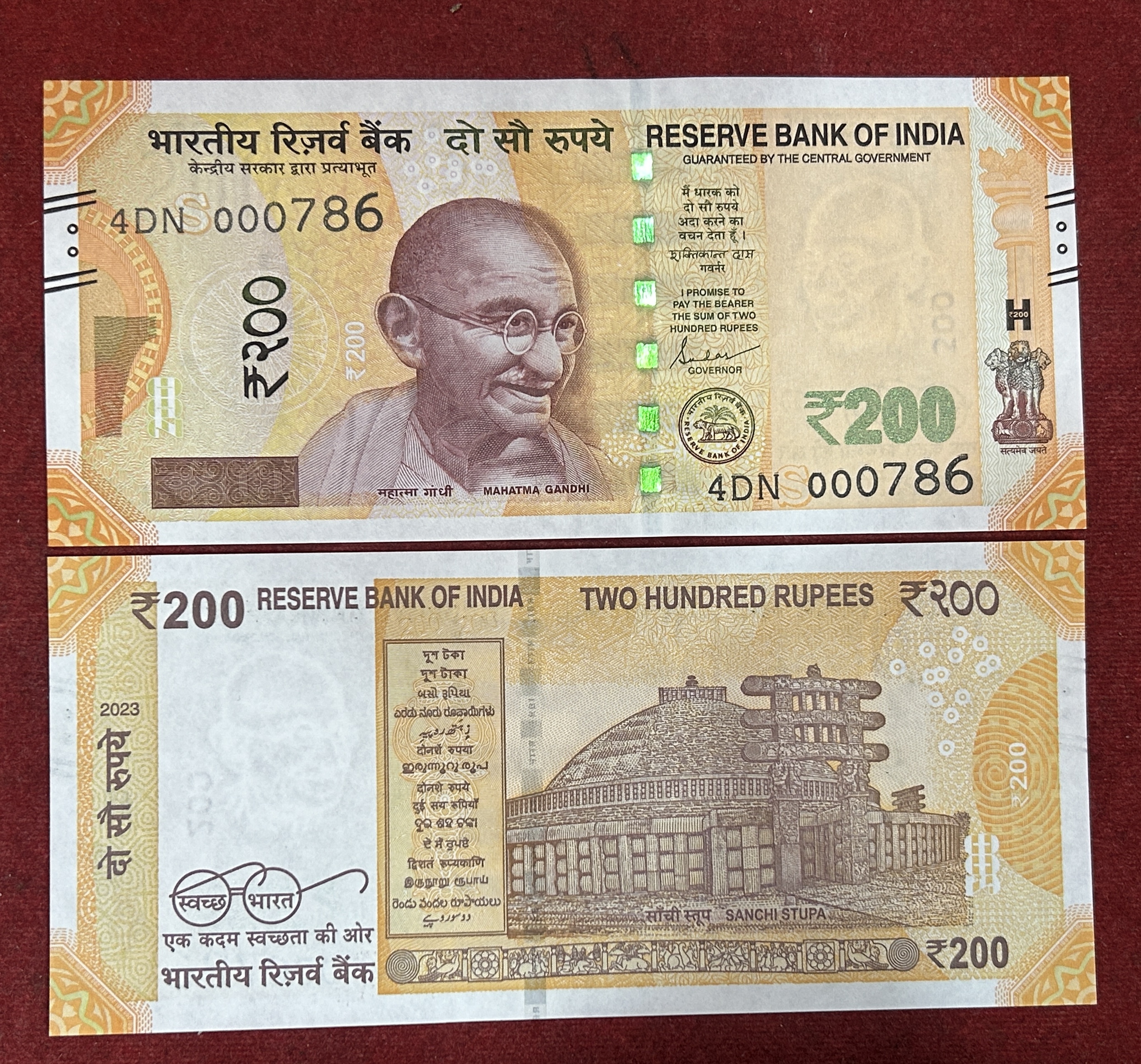 Rs 200 India Banknote Fancy Number 000786 GEM UNC UNIQUE Latest Pattern Issue