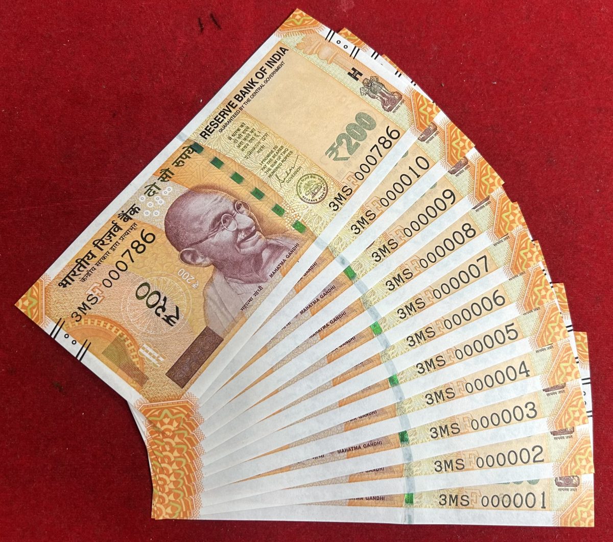 Rs 200 India Banknote Fancy Number Set 000001 to 000010 ➕ 000786 Same prefix Totally 11 note set GEM UNC UNIQUE