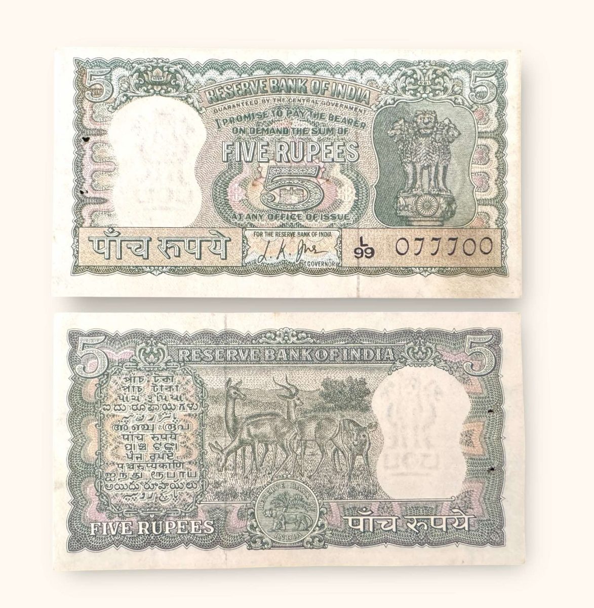 Rs 5 Vintage India Bank Deer Note Issue Fancy Number 077700 Unique and Rare