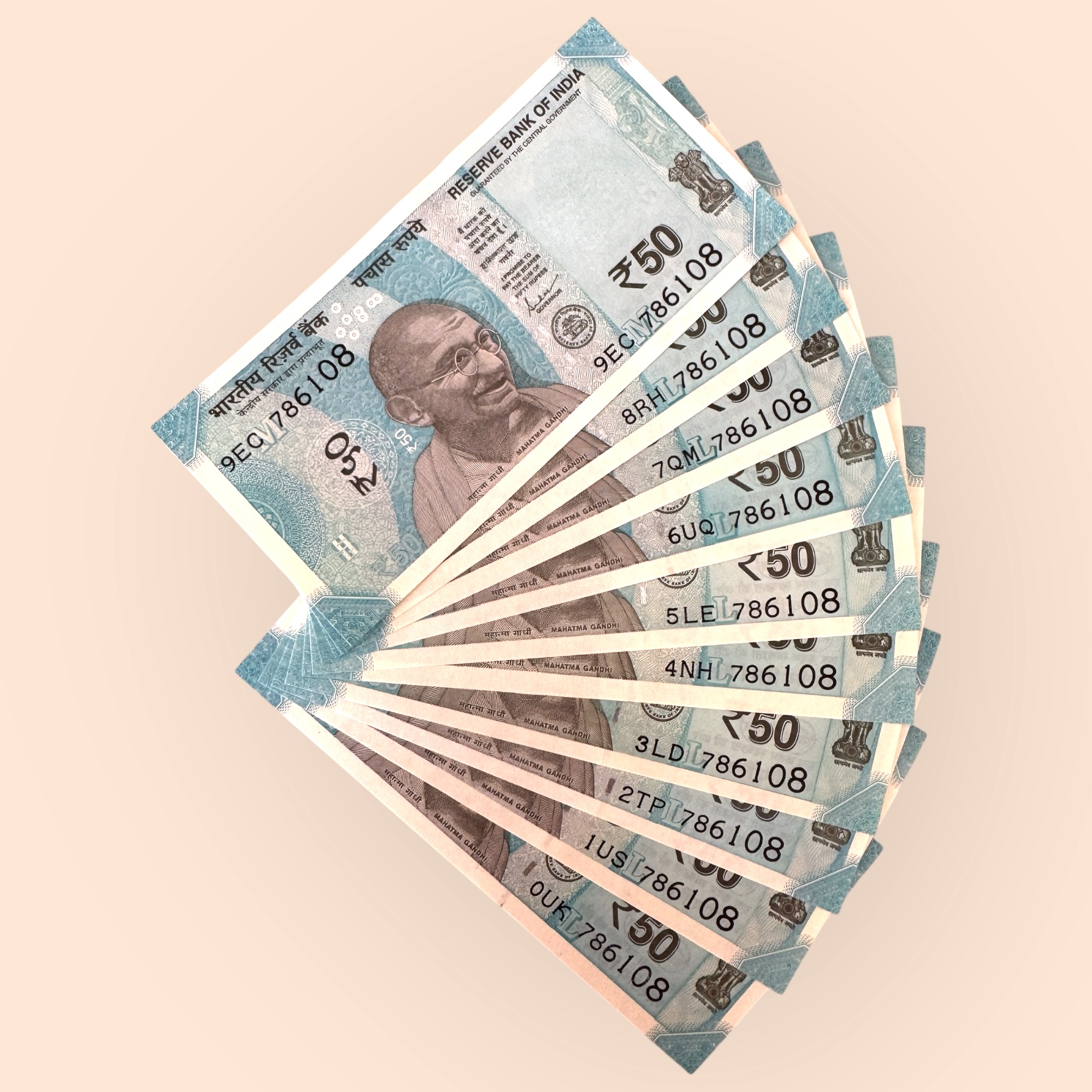 ✨ Rs 50 India Banknote Set 786108 Number 10 Note Set Unique and Rare