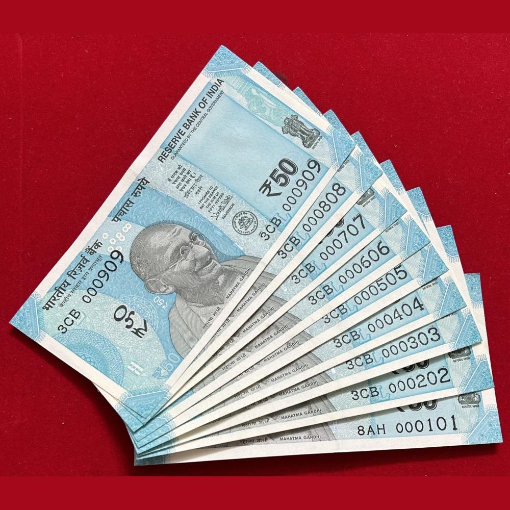 Rs 50 India Banknote Solid Fancy Set 000101 – 000909 GEM UNC 9 Pcs set UNIQUE COLLECTION