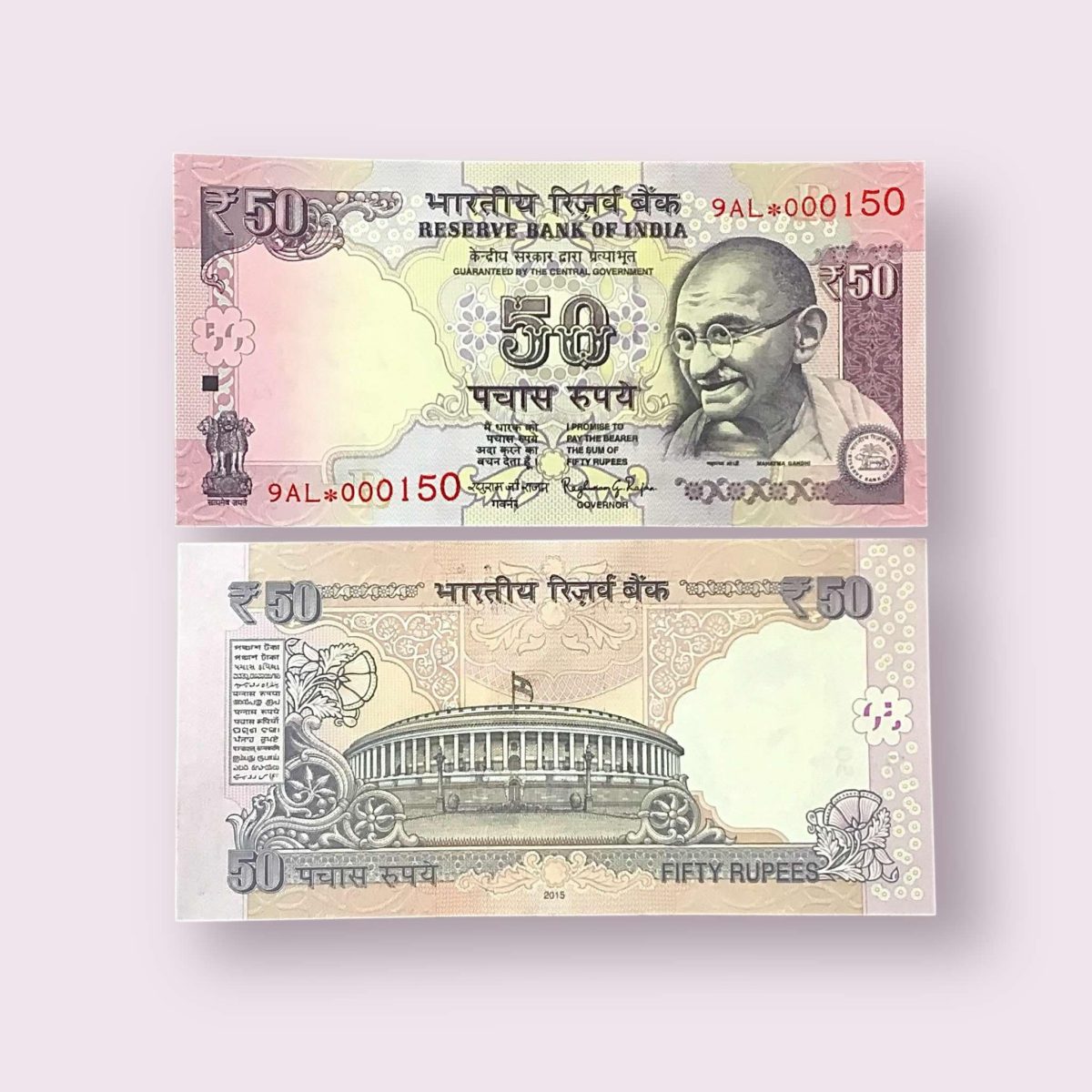 Rs 50 STAR REPLACEMENT LOW SERIAL 000150 PREFIX 9AL Signed by Raghuram Rajan Year 2015 Issue Gem Unc Very Unique and Rare