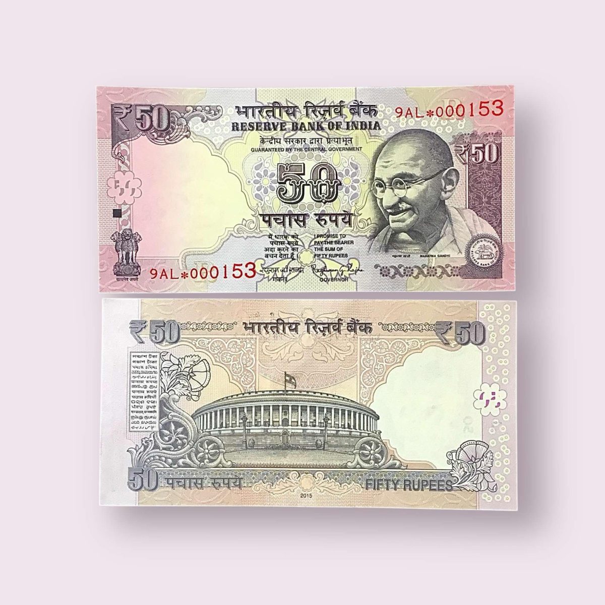 Rs 50 STAR REPLACEMENT LOW SERIAL 000153 PREFIX 9AL Signed by Raghuram Rajan Year 2015 Issue Gem Unc Very Unique and Rare