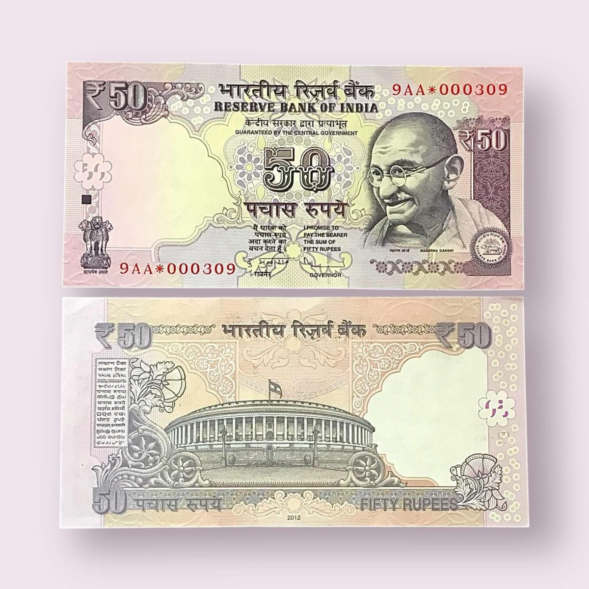 Rs 50 STAR REPLACEMENT LOW SERIAL 000309 PREFIX 9AA Signed by D Subbarao Year 2010 Issue Gem Unc