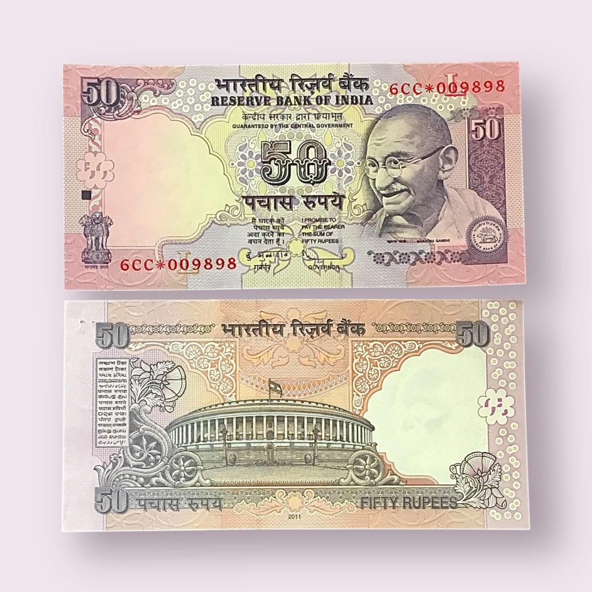 Rs 50 STAR REPLACEMENT LOW SERIAL 009898 PREFIX 6CC Signed by D Subbarao Year 2011 Issue Gem Unc
