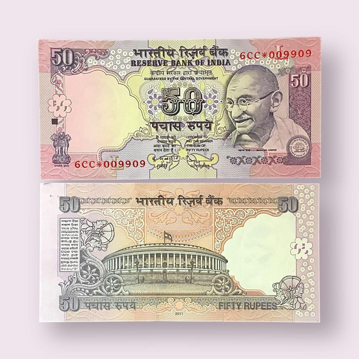 Rs 50 STAR REPLACEMENT LOW SERIAL 009909 PREFIX 6CC Signed by D Subbarao Year 2011 Issue Gem Unc
