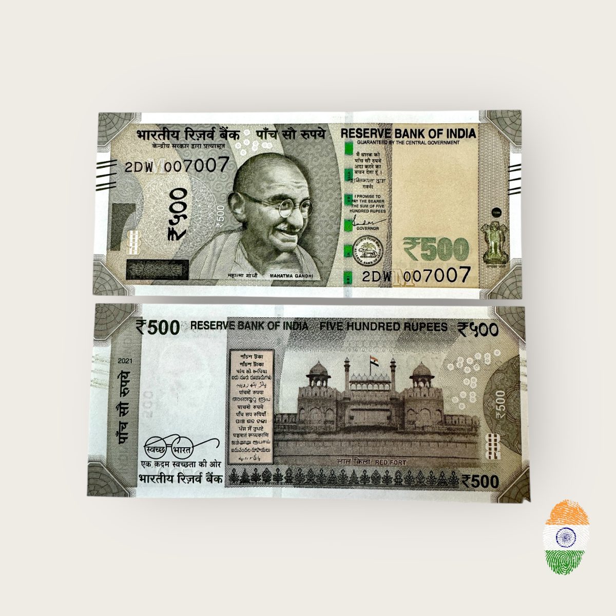 Rs 500 India Banknote Low Serial Number 007007 Issue Gem Unc Unique and Rare