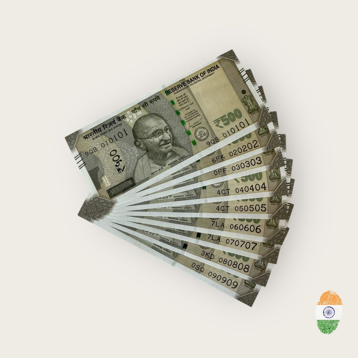 Rs 500 Issue India Banknote Fancy Set 010101 to 090909 Gem UNC Unique And Rare