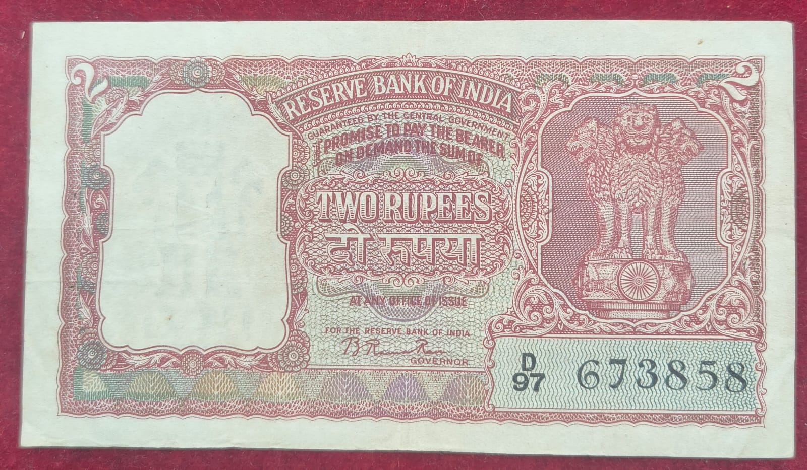 TWO RUPEES DIAMOND GOVERNOR B.RAMA RAO RARE TOP CONDITION VERY RARE NOTE