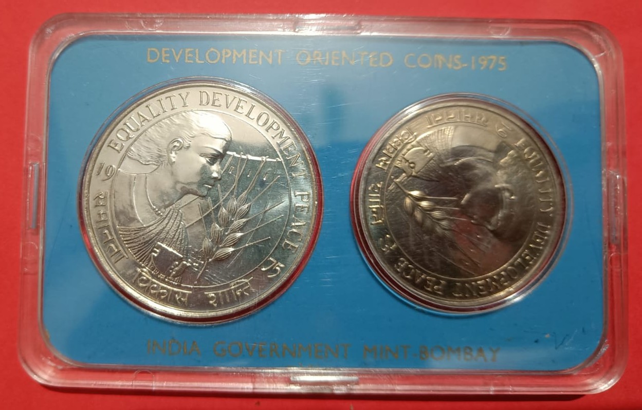 1975 – Equality Development Peace UNC 2 Coins Set 50 and 10 Rs with Certificate and Cover