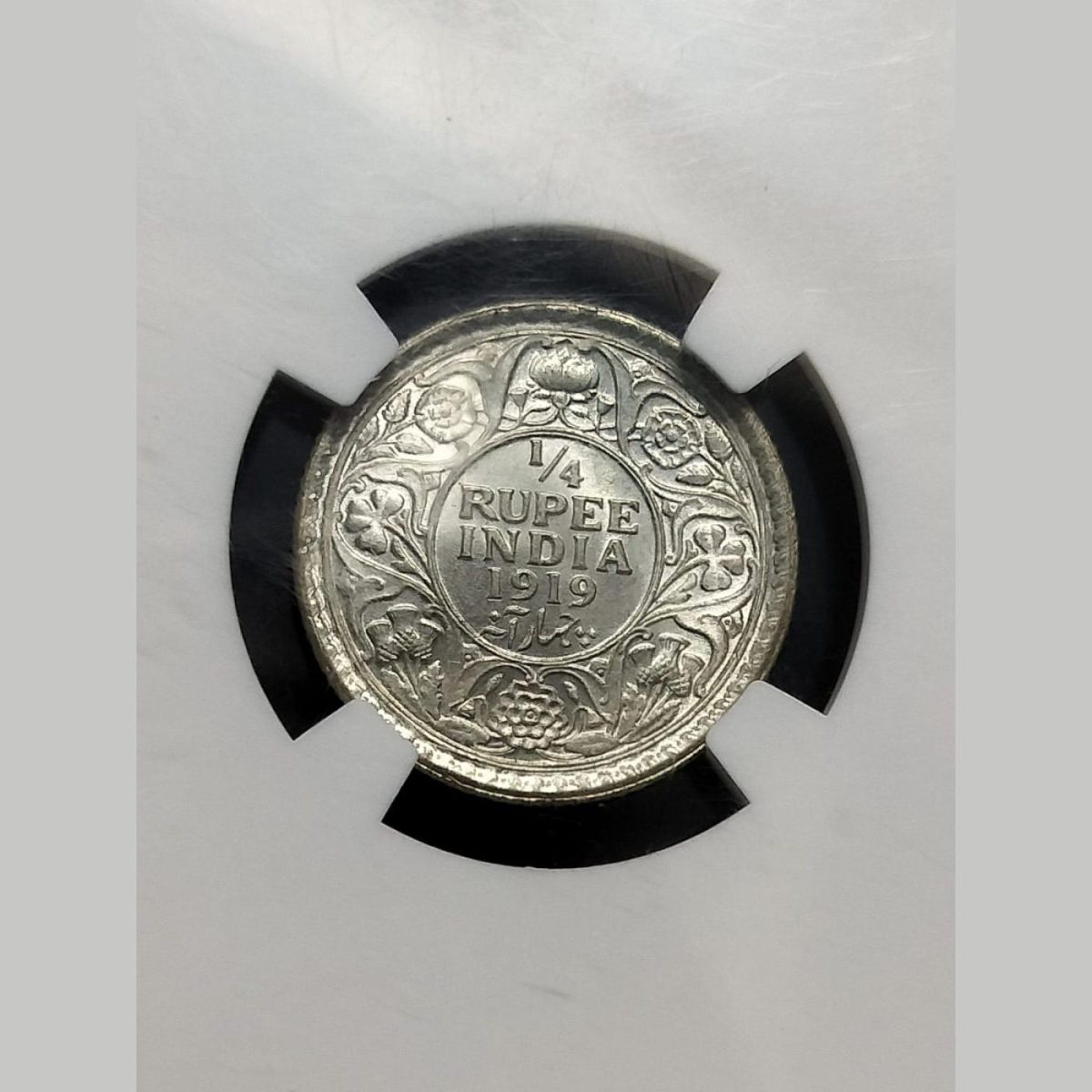 EXTREMELY RARE MS 64 1/4 RUPEE INDIA 1919 NGC GRADED