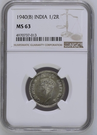 HALF RUPEE 1940 NGC GRADED COIN MS 63 GEORGE VI KING EMPEROR