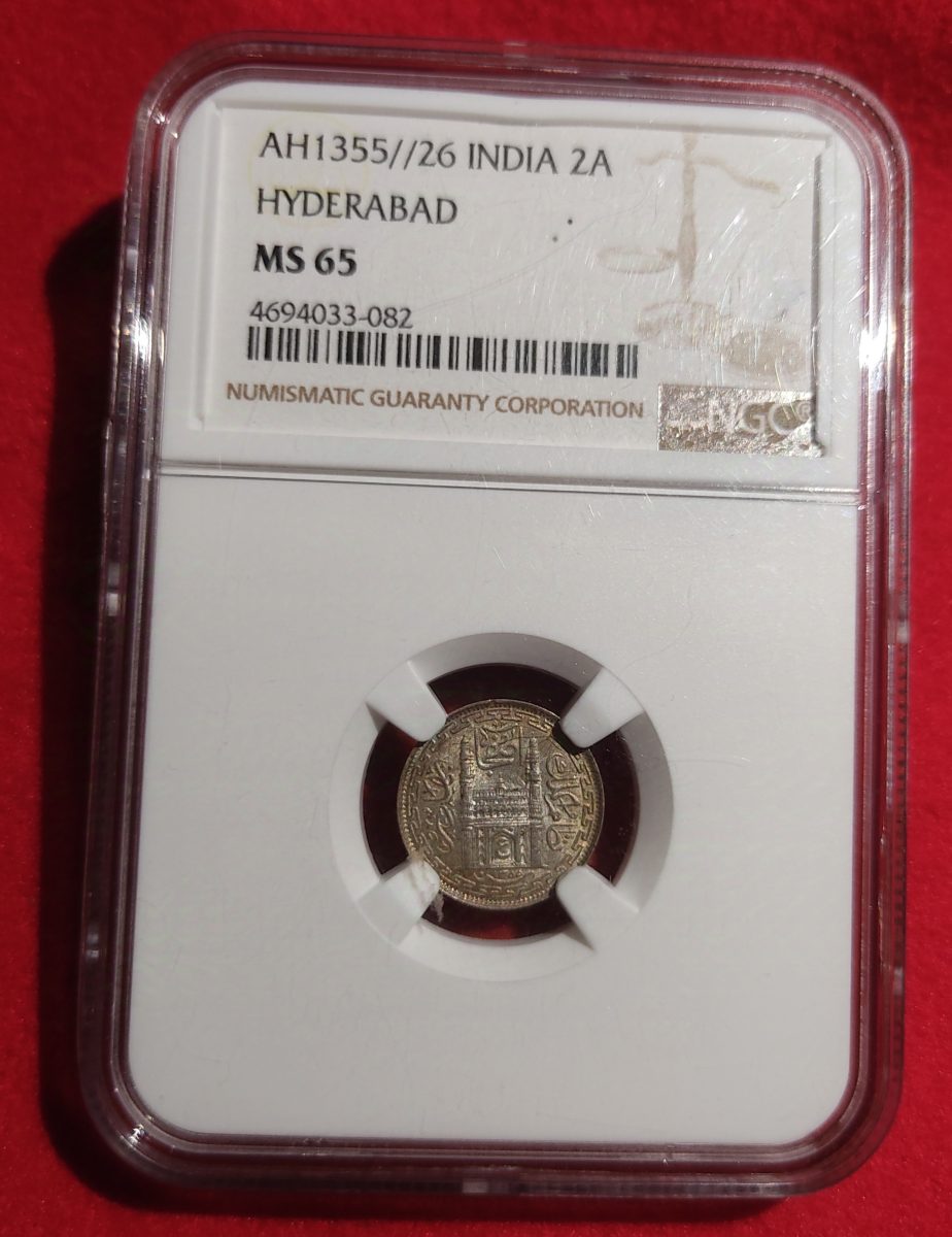 Exteremly Rare Mir Usman Ali Khan Silver Two Annas Coin Graded By NGC MS 65