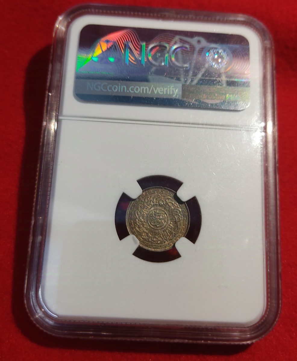 Unveil an extraordinary piece of history with the Extremely Rare Mir Usman Ali Khan Silver Two Annas Coin, graded by NGC as MS 65. This exceptional silver coin, minted in Hyderabad under the reign of Mir Usman Ali Khan, the last Nizam of Hyderabad, holds immense numismatic significance. The coin’s denomination of 2 Annas showcases intricate details and a stunning luster, making it a prized collector’s treasure worldwide. With a sharp strike and historical relevance, this coin offers a glimpse into Hyderabad’s rich heritage. Certified by NGC at MS 65, this coin boasts exceptional quality and is a must-have for enthusiasts seeking a rare and valuable addition to their collection.
