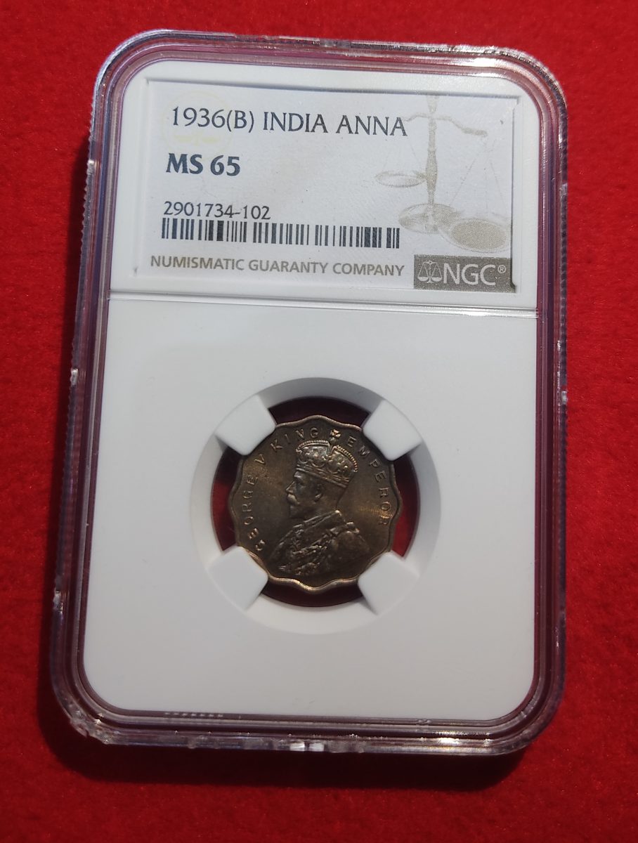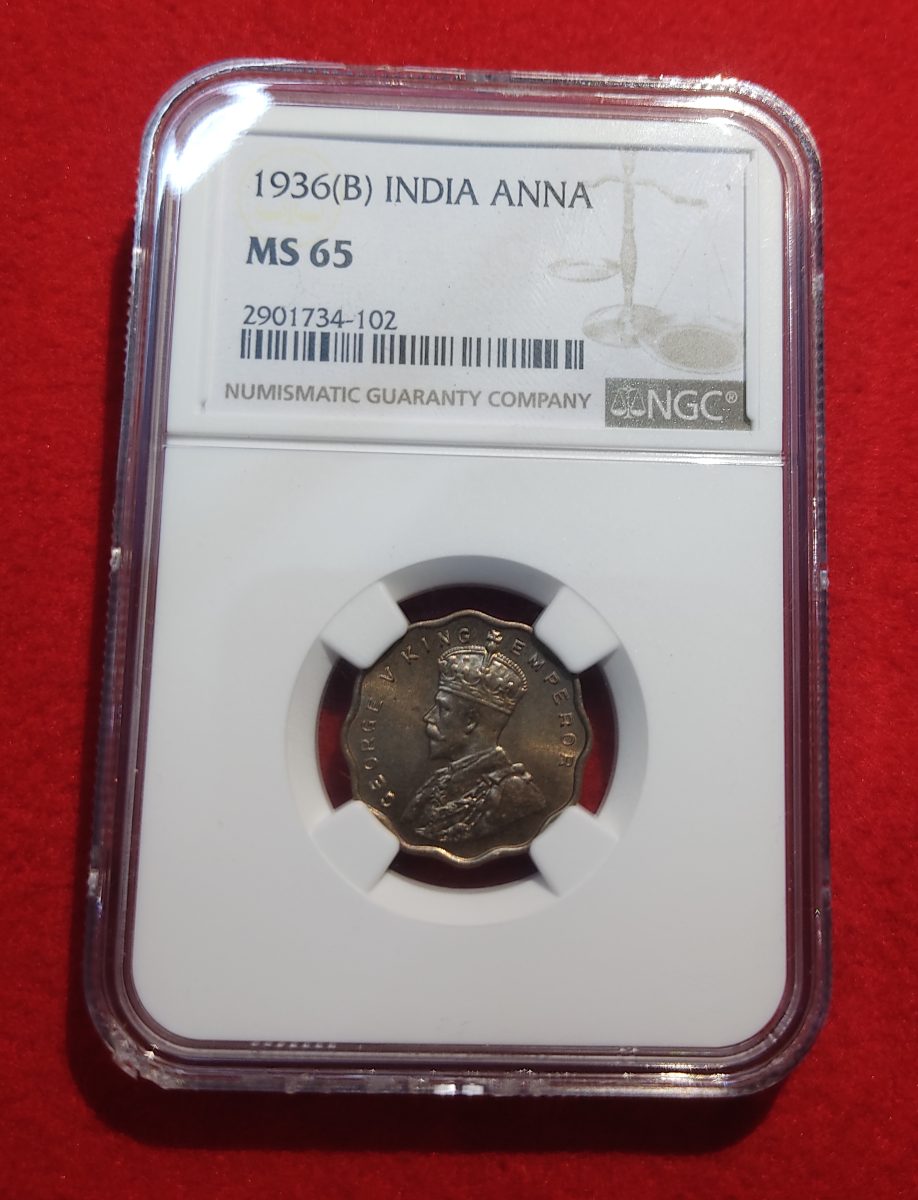 ONE ANNA GEORGE V BOMBAY MINT NGC GRADED 65