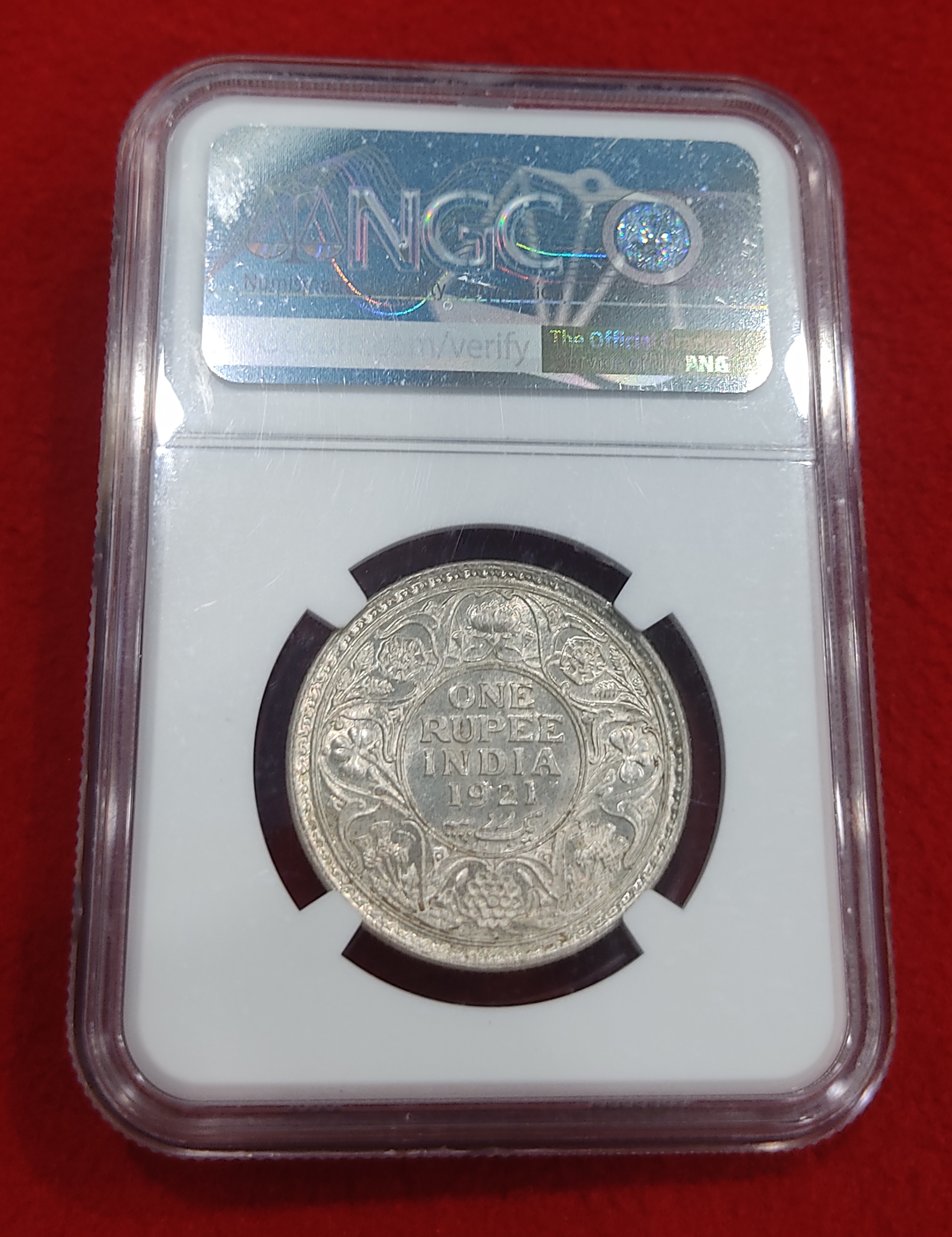 ONE RUPEE SILVER COIN GEORGE V YEAR 1921 BOMBAY MINT GEM UNC CONDITION WITH NGC GRADED HIGH GRAD MS 62