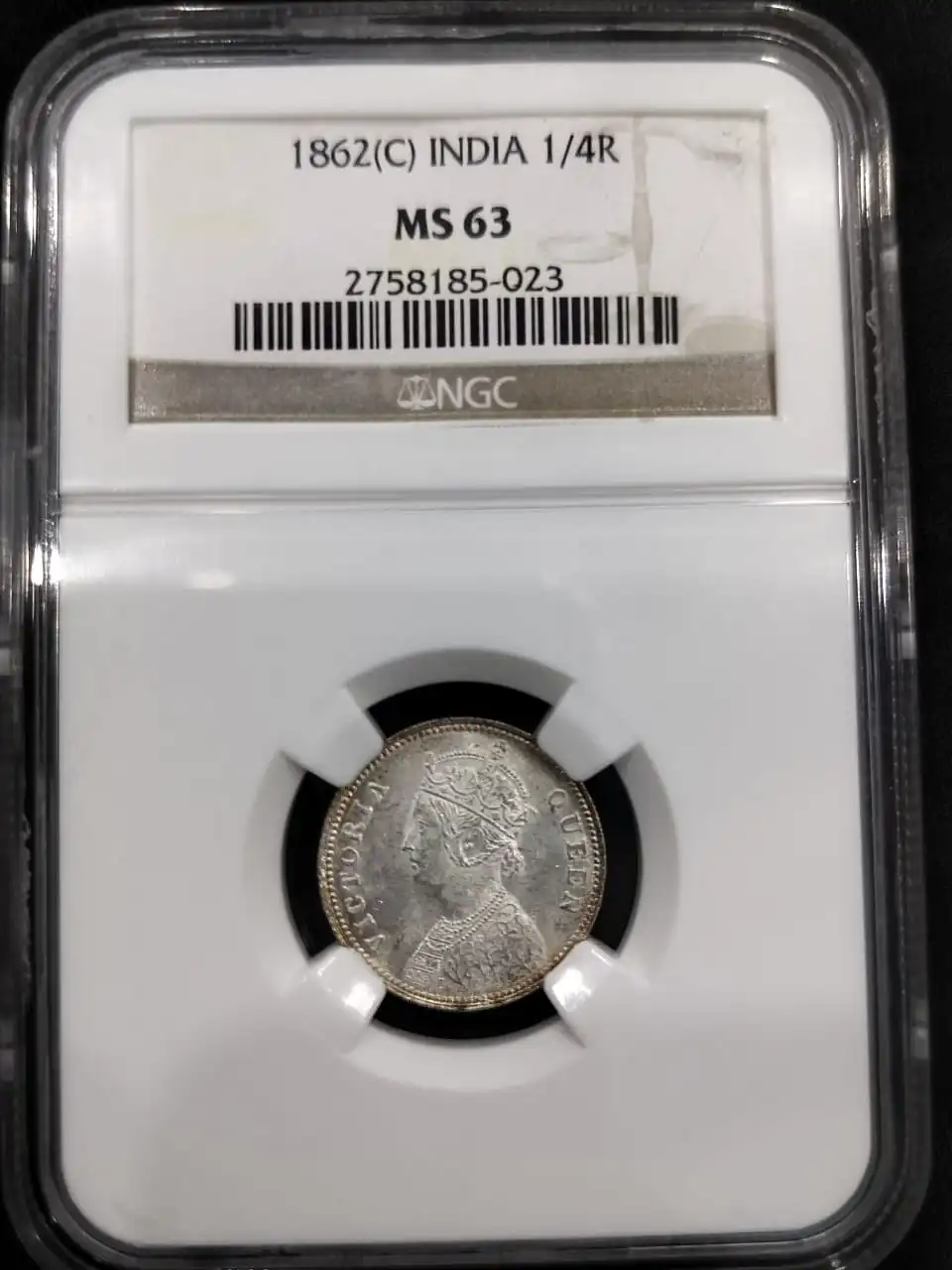 Rare 1/4 Rupee 1862 NGC Graded in MS 63 Grade Victoria Queen British India Silver Coin