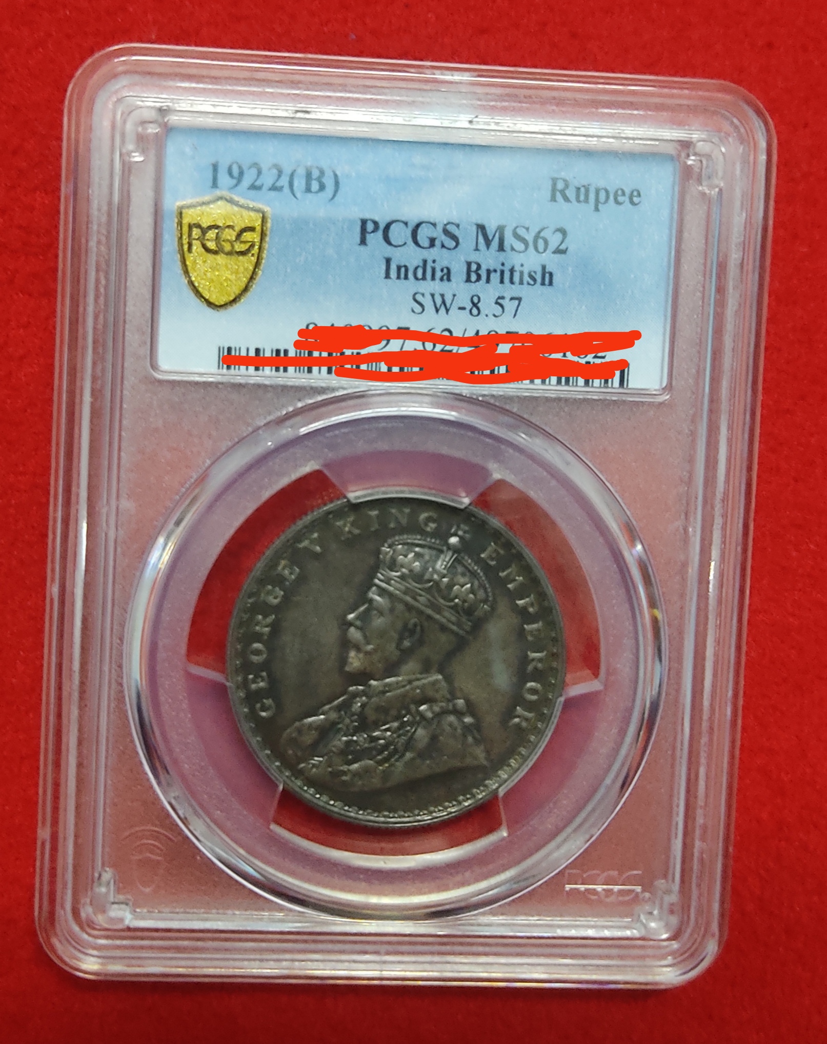 RARE ONE RUPEE SILVER COIN GEORGE V 1922 BOMBAY PCGS GRADED MS 62