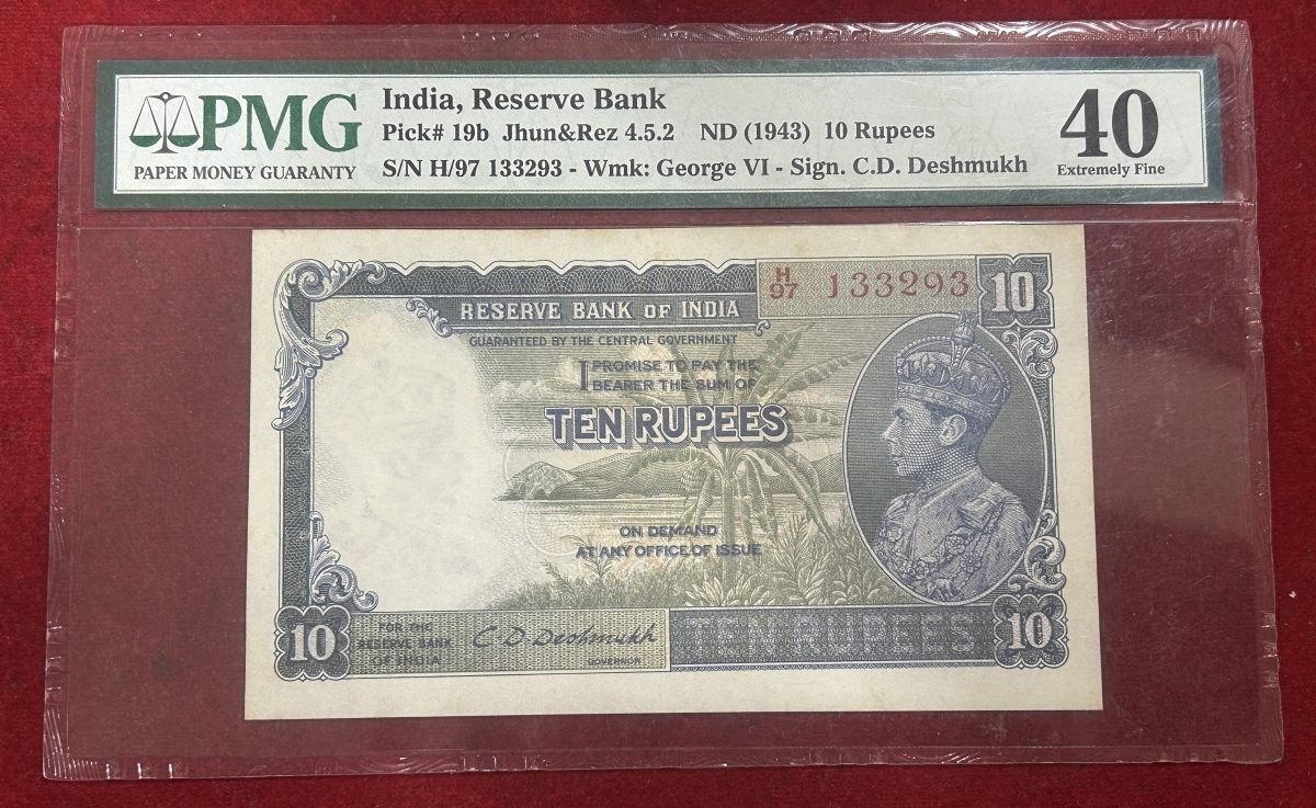 10 Rupees George Fifth Governor -C.D.Deshmukh with India PMG No. 1 Company (Grad 40) Rare Note