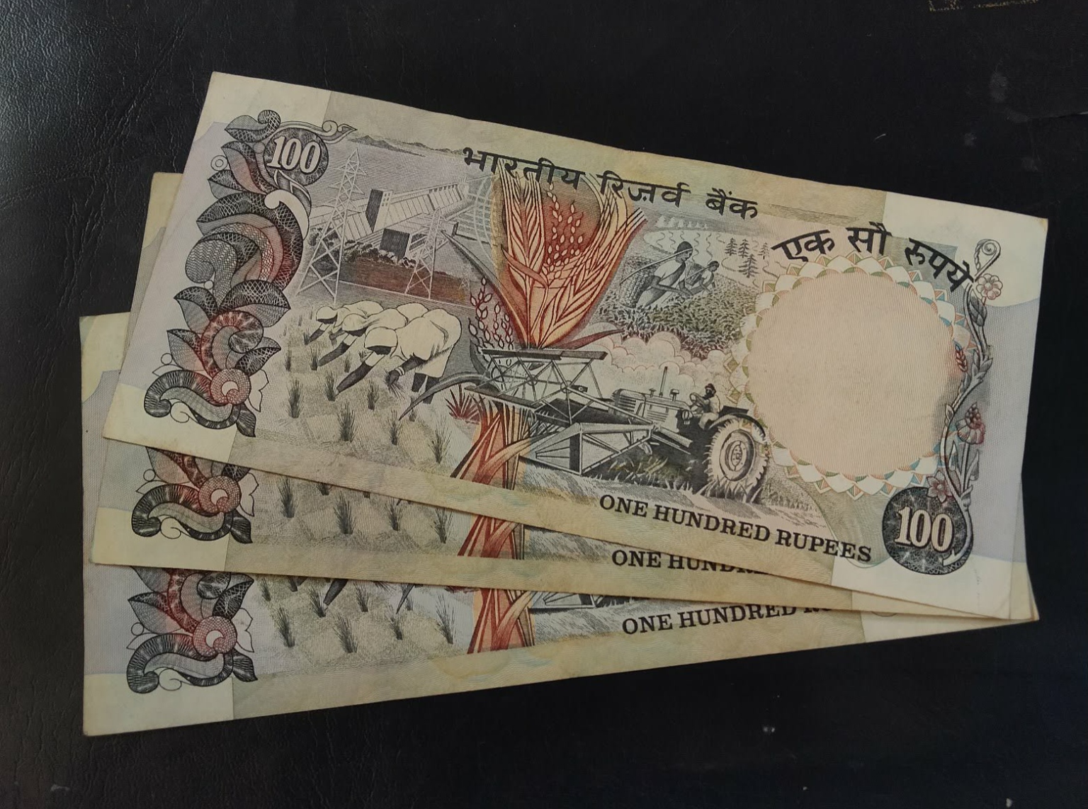 100 Ruppes RN Malhotra Kobalt Issue Agriculture Note Crispy condition Three Pieces
