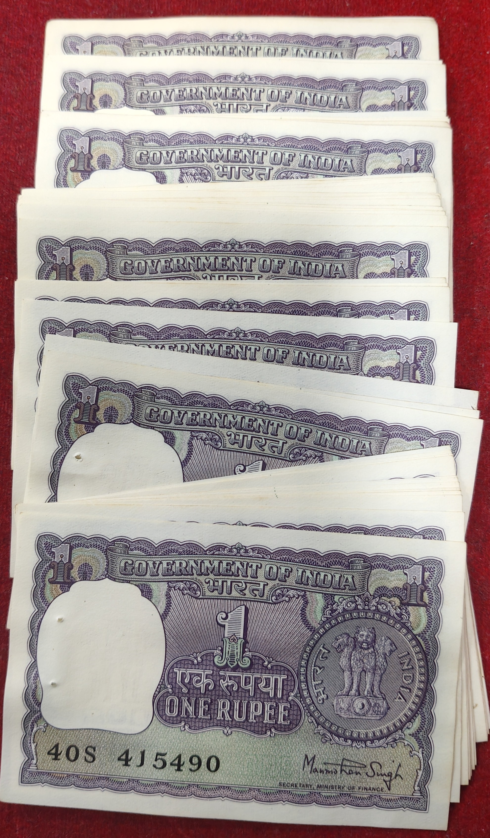 One ruppes big size unc mix governer mix year (55 pcs lott ) unc # 55