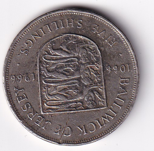 Jersey 5 Shillings 1966 – Elizabeth II RARE BIG SIZE CROWN SIZE COIN #Z-1361