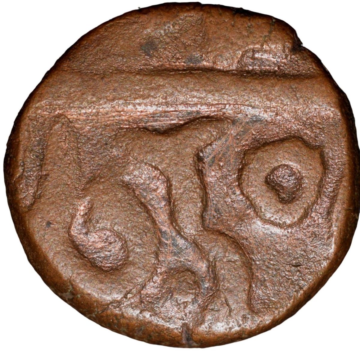 Copper 1/2 Paisa of Maratha Confederacy – INO Shah Alam II (AD 1759-1806) Ravishnagar Sagar Mint Anonymous Type