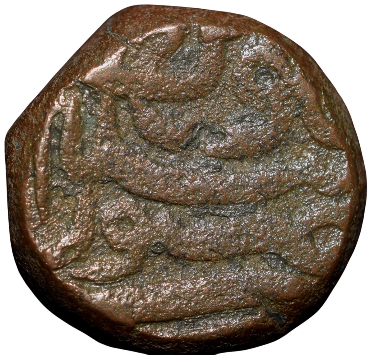 Copper Dam Coin of Akbar of Chittor Mint Semi-Tugra Style dated AH 1000