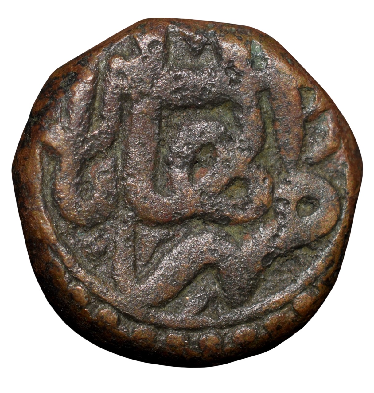 Copper Dam of Akbar (AD 1556-1605) of Allahabad Mint KM32.3 ilahi 36 Rare