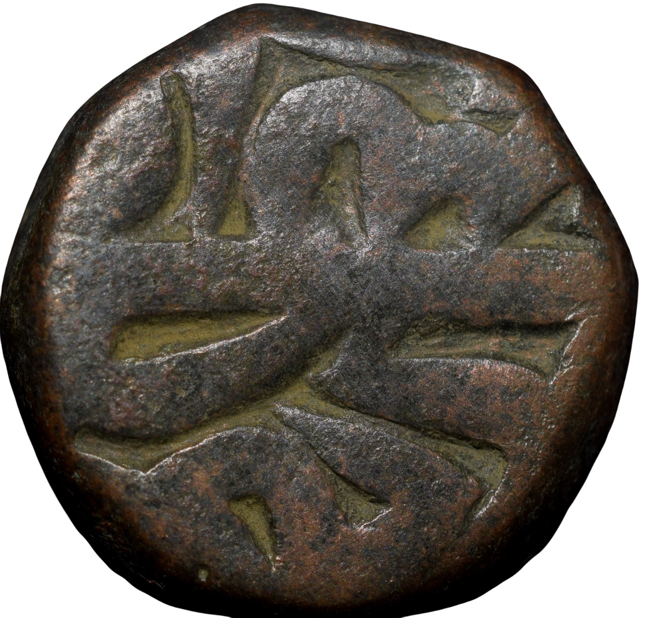 Copper Dam of Akbar(AD1556-1605) of Hazrat Dehli Mint Fi-Tarikh Type Legends arranged Differently