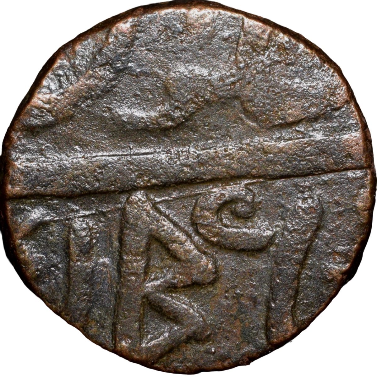 Copper Paisa of Rughuji III(AD1818-53) of Bhonsala Raja’s of Nagpur with Zaripatka Flag Ty. 48.1