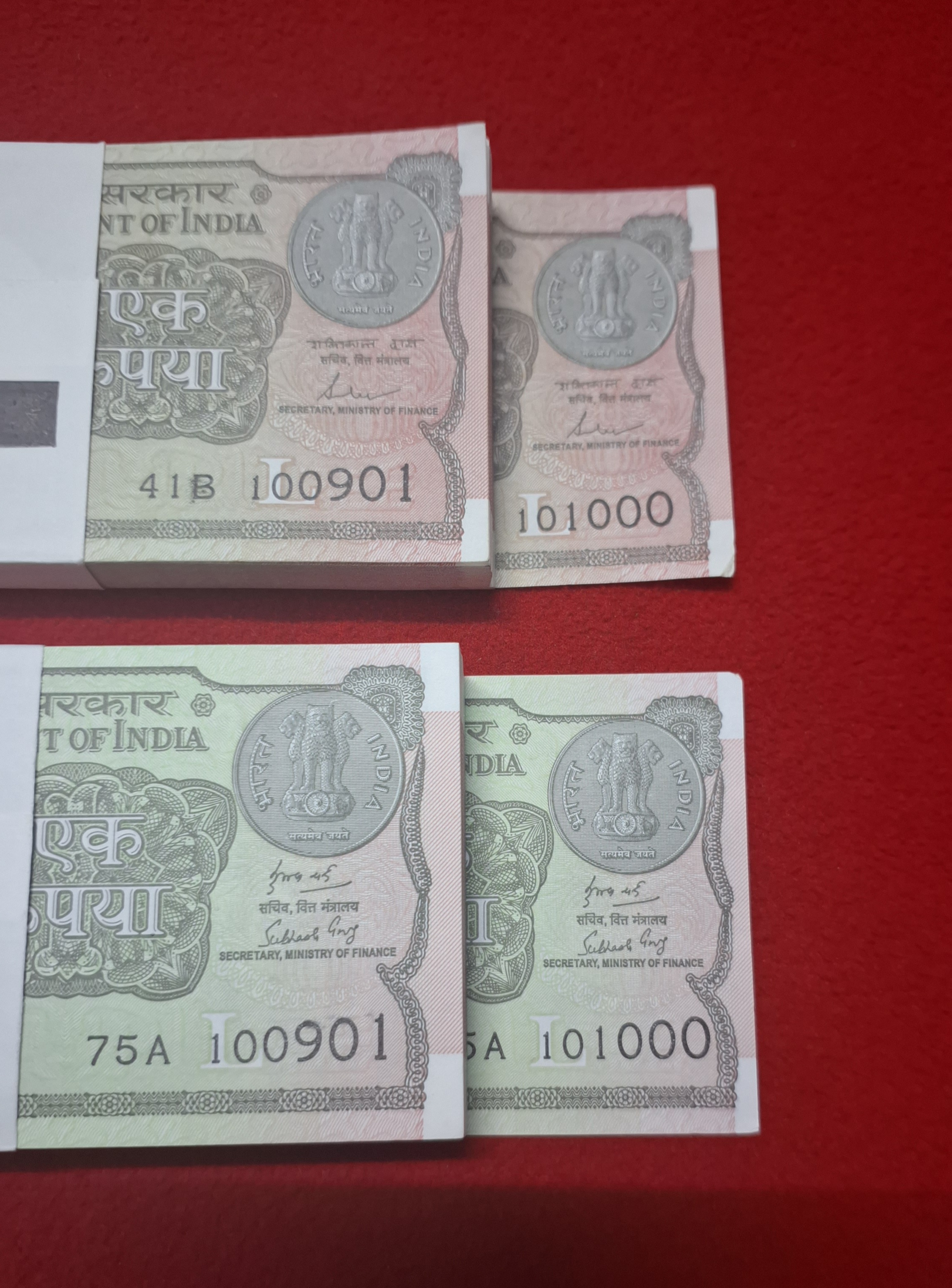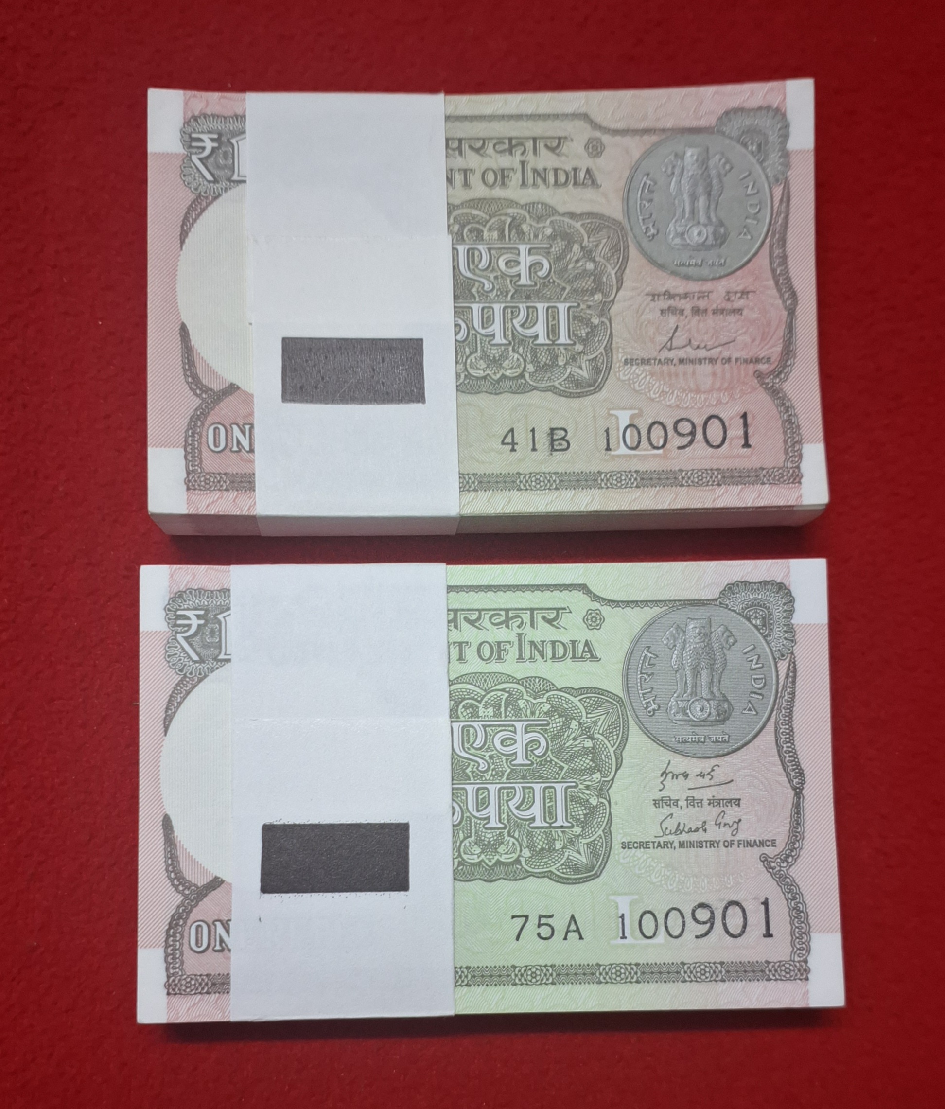 1 RUPEE 2 BUNDLE SAME SERIAL NO. 100901. 2017,2018 (BIRTHADAY BUNDLE) 10 SEPTEMBER