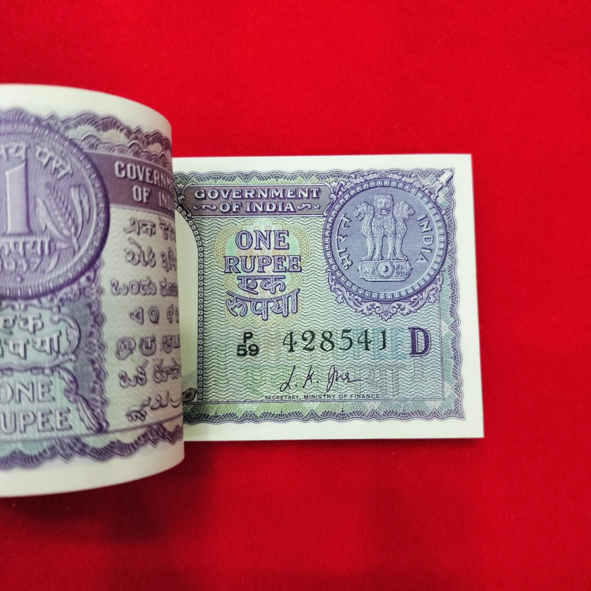 1 Rupee bundle 1957 L.Kjha 5 Notes Missing Serial No. P59 428505- 428599