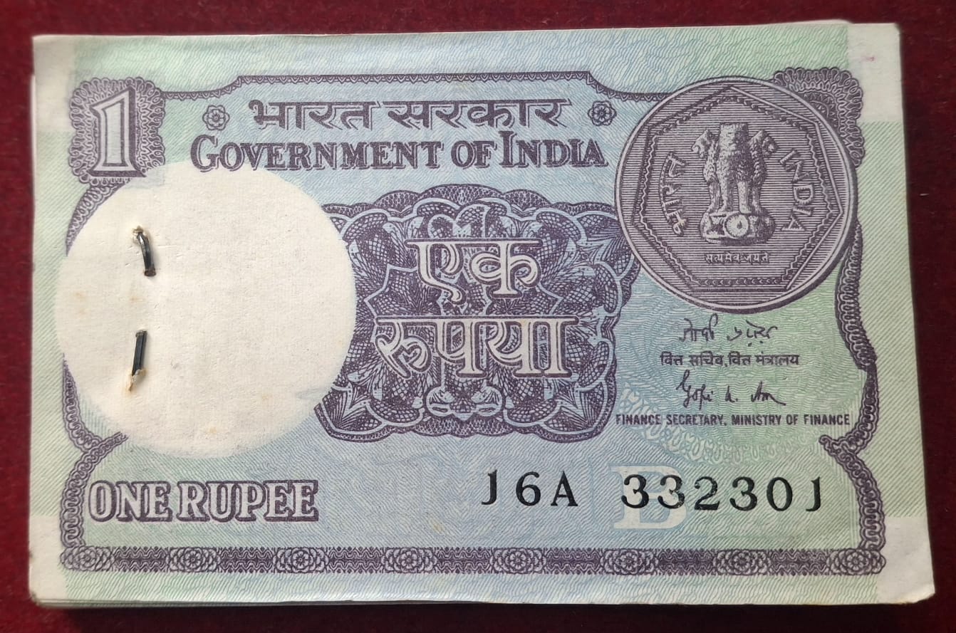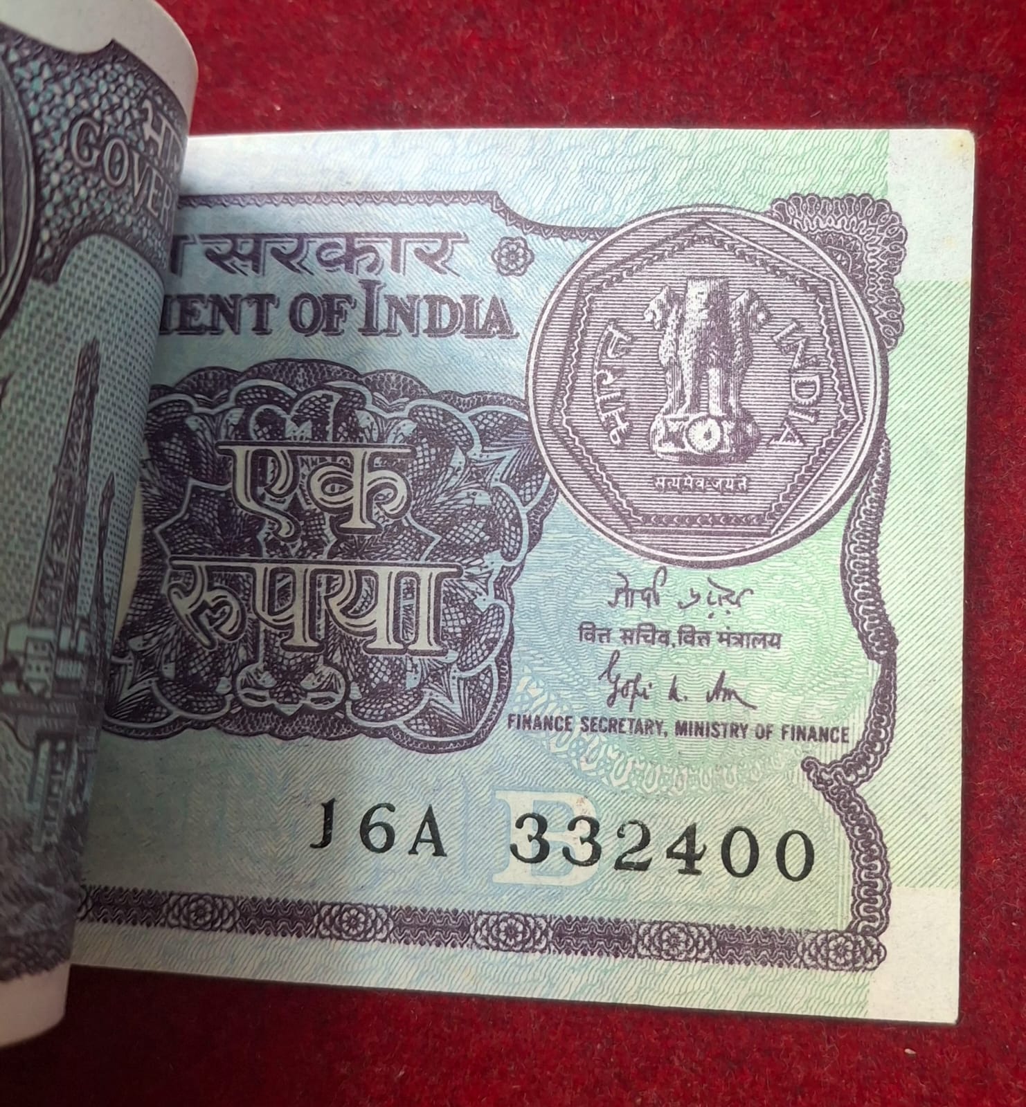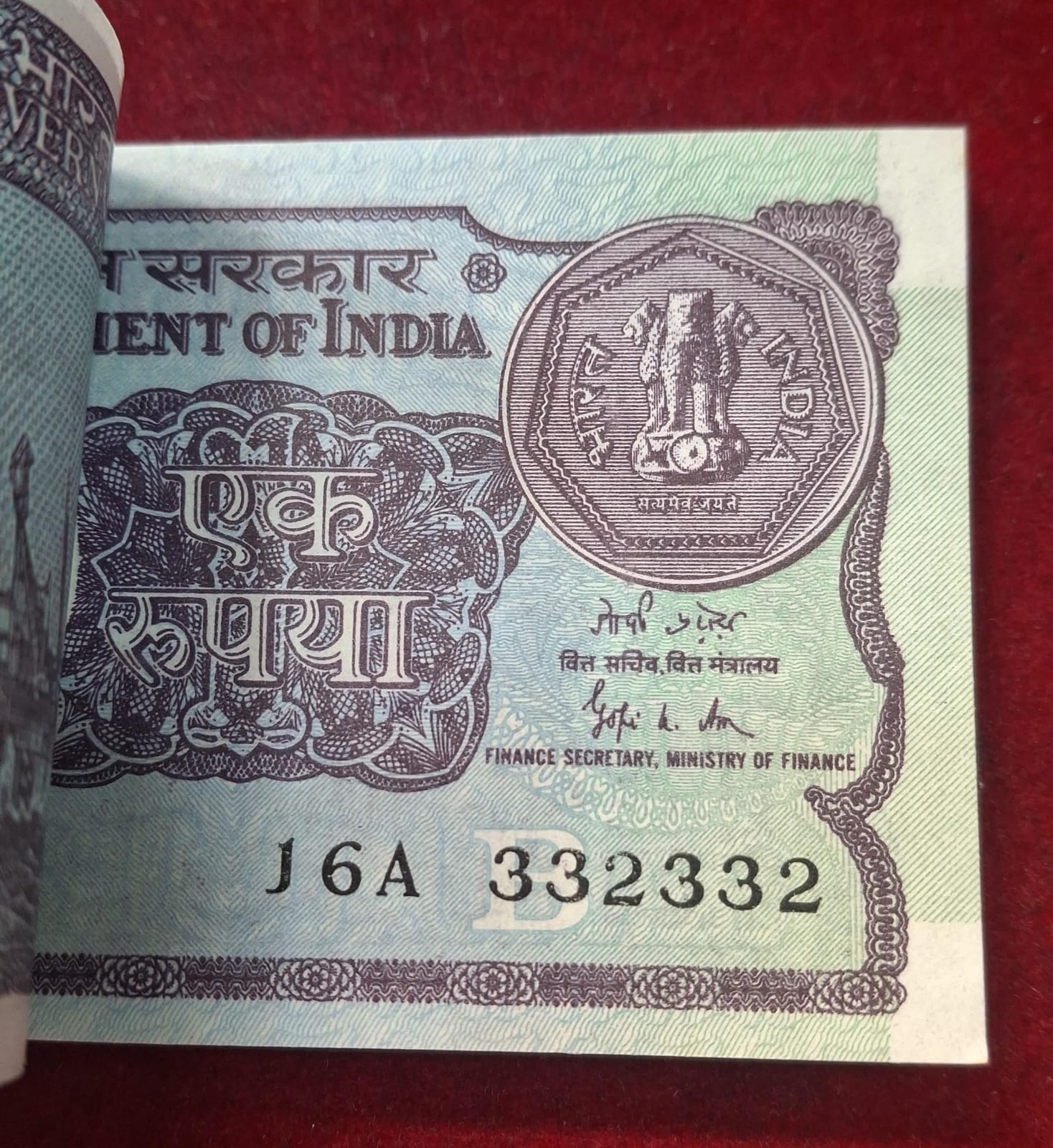 1 RUPEES 1989 GOVERNOR GOPI PATEL RARE ( 100 NOTES) SERIAL PACKET WITH FANCY NUMBER 332332