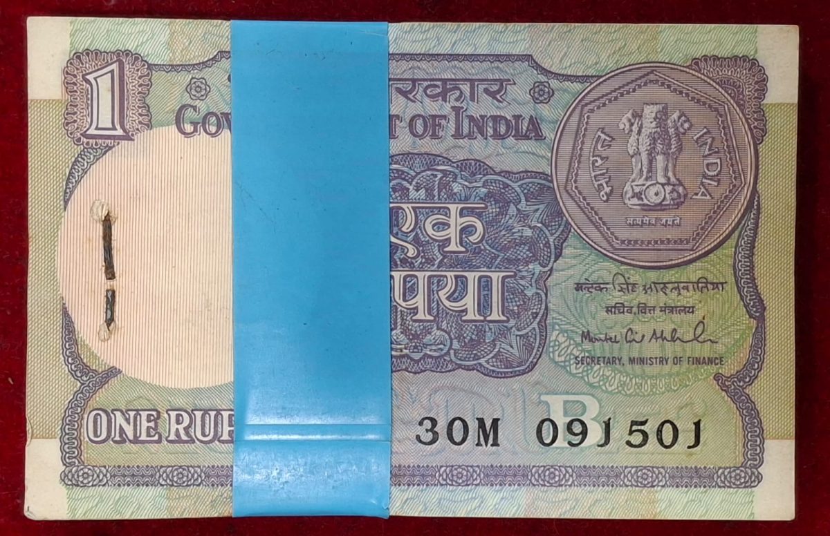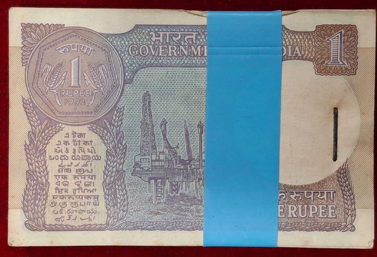 1 Rupees 1992 Governor Montek Singh Ahluwalia UNC Serial Rare Packet