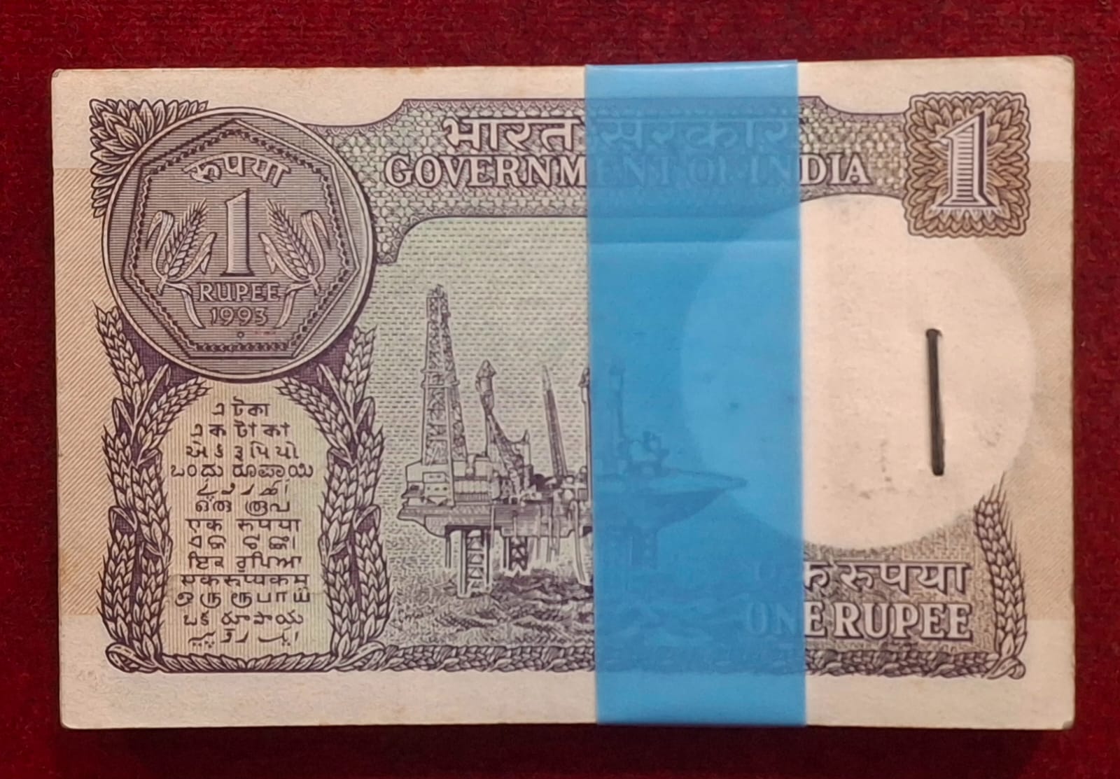 1 RUPEES 1993 GOVERNOR Montek Singh Ahluwalia RARE (97) SERIAL PACKET first 3 note missing packet