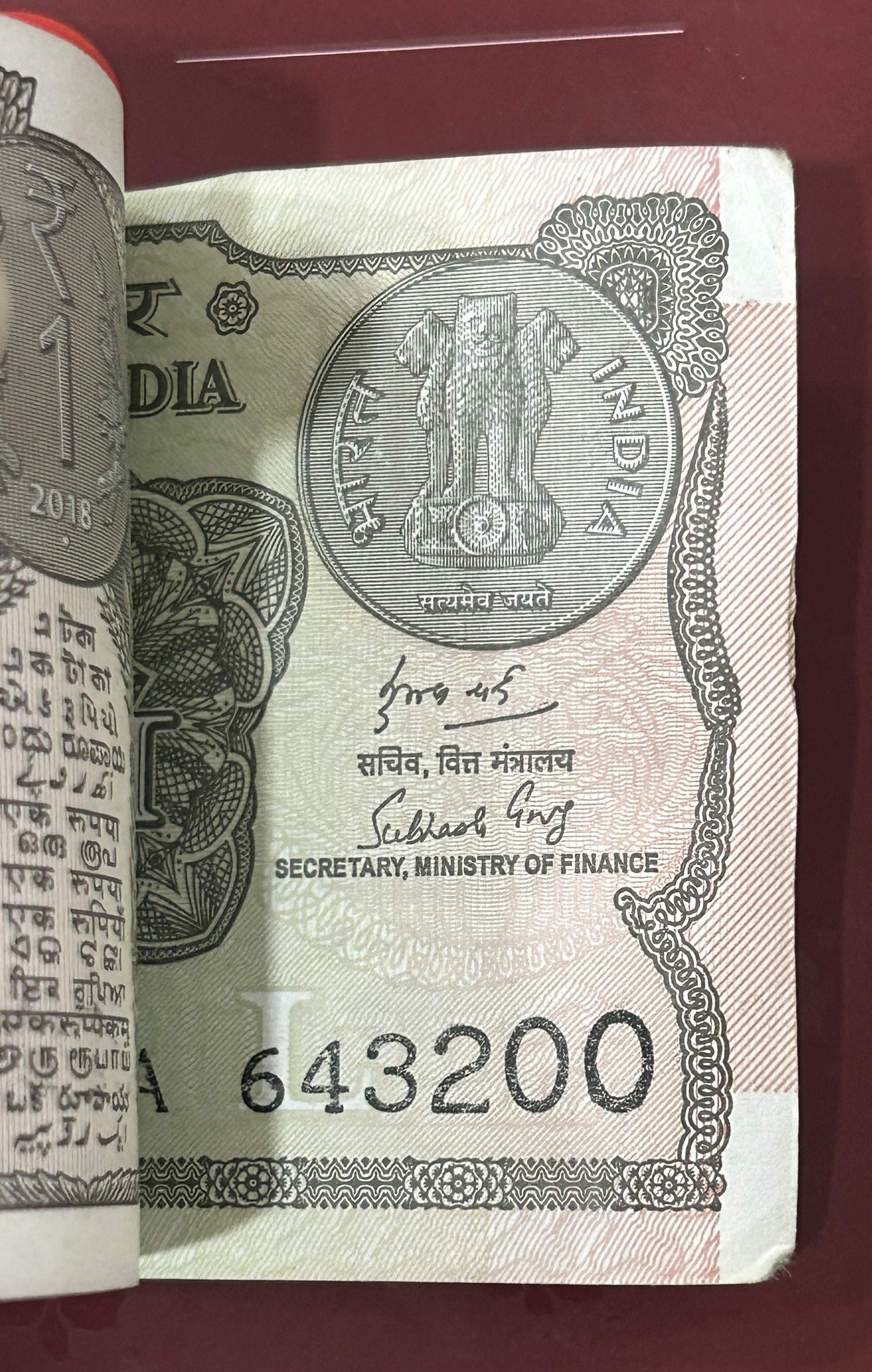 1 RUPEES 2018 GOVERNOR SUBHASH GARG RARE GEM UNC SERIAL PACKET