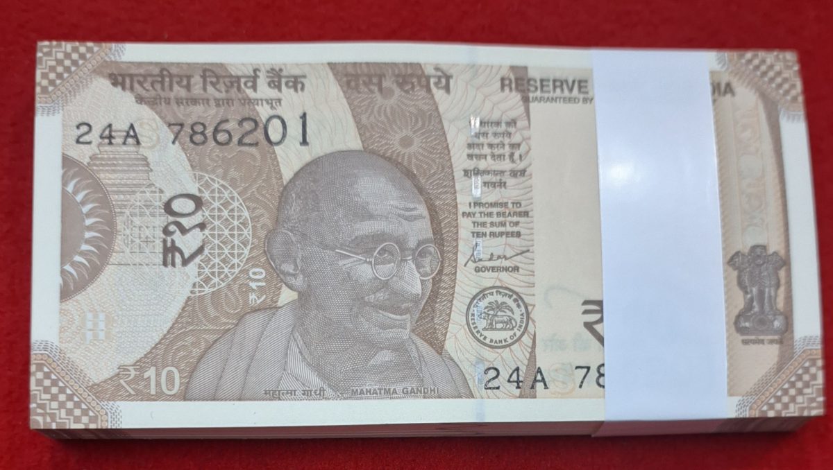 10 RUPEE BUNDLE GEM UNC CONDITION STARTING 786 SERIAL NO. 24A 786201