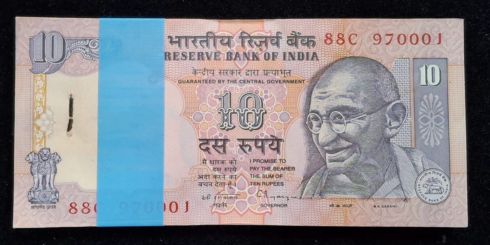 10 RUPEES GOVERNOR C.RANGARAJAN RARE GEM UNC (100 NOTE) SERIAL PACKET