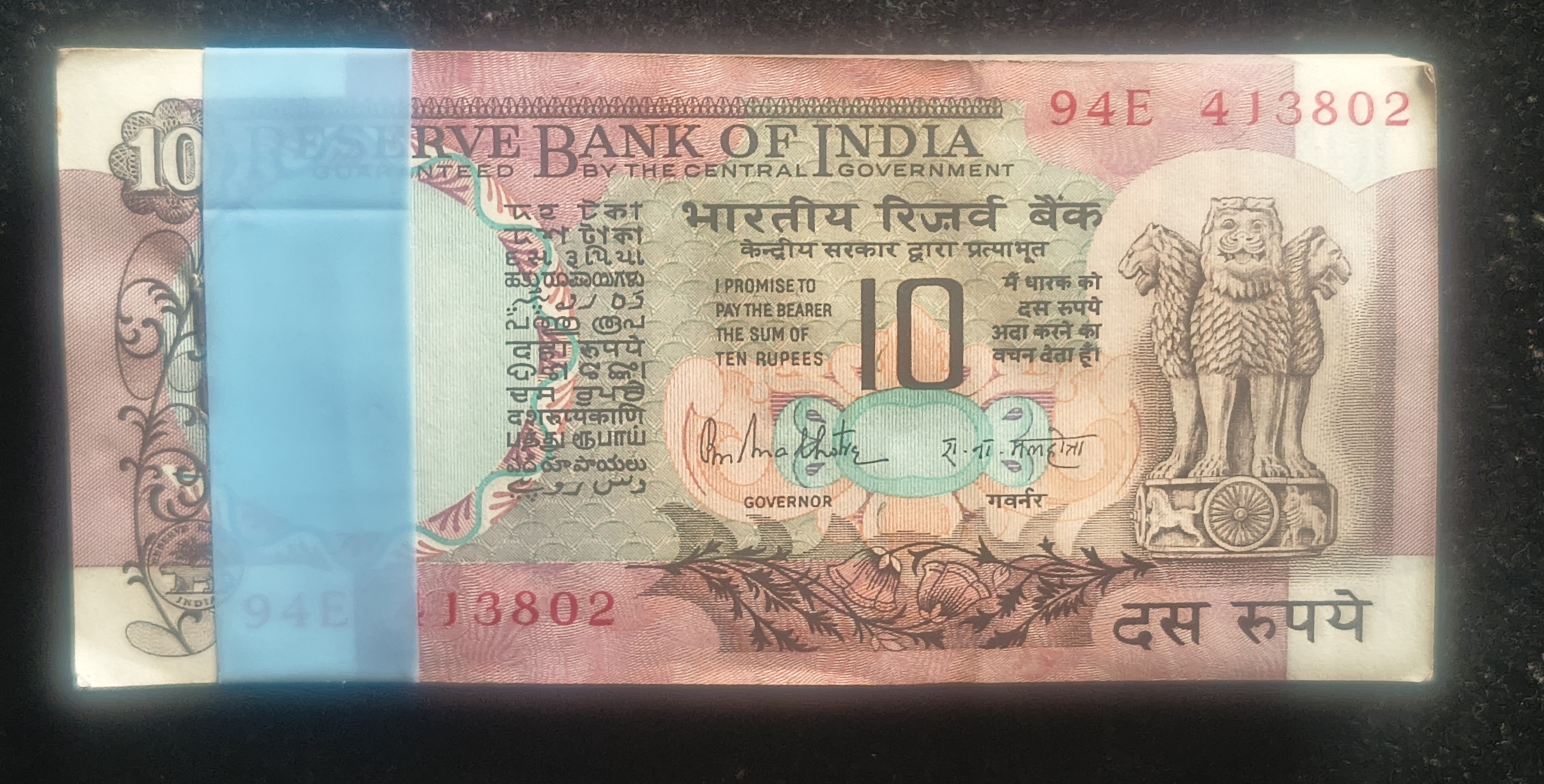 10 RUPEES GOVERNOR R.N.MALHOTRA RARE SERIAL PACKET ( FIRST NOTE MISSING)