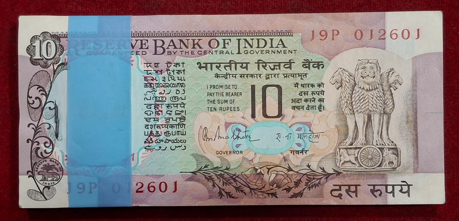 10 RUPEES PEACOCK GOVERNOR R.N.MALHOTRA RARE GEM CHOCOLATE SERIAL PACKET