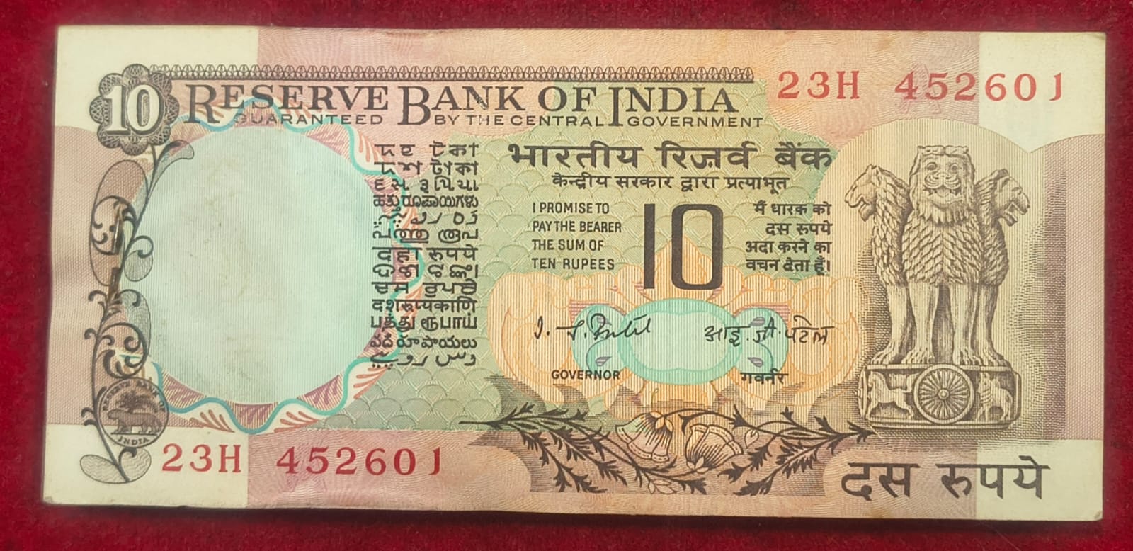 10 RUPEES PEACOCK OLD ISSUE GOVERNOR I.J.PATEL RARE UNC SERIAL PACKET