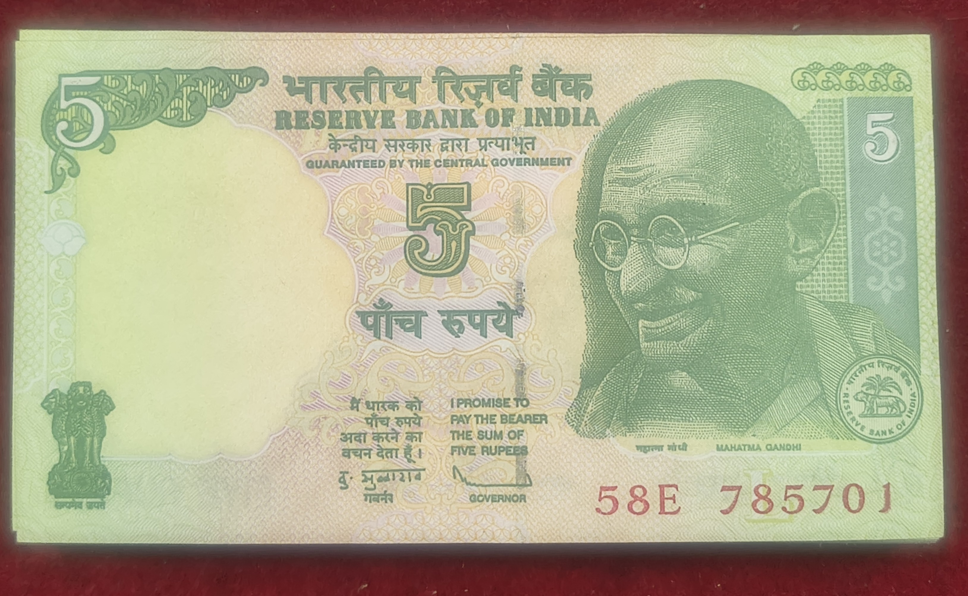 100 NOTE NON- SERIAL UNC 5 RUPEES GANDHI GOVERNOR D.SUBBARAO #11