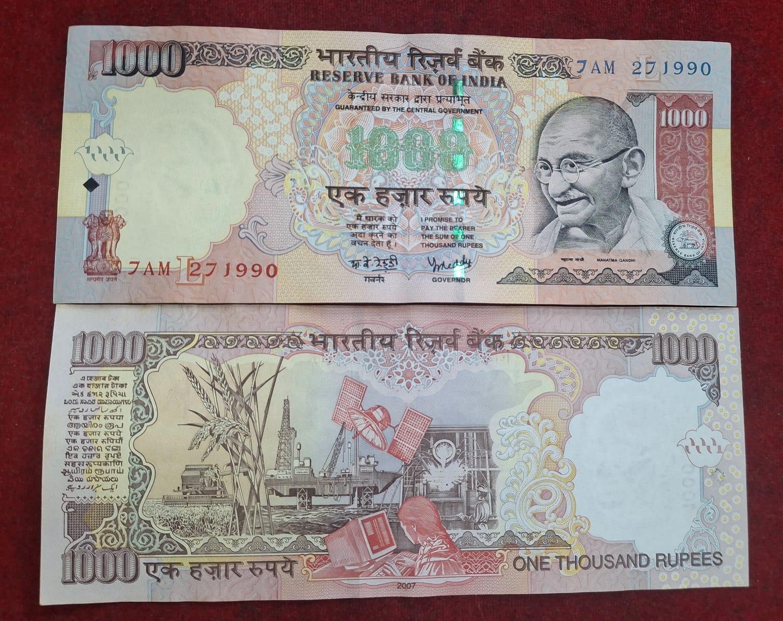 1000 RUPEES GOVERNOR Y.B.REDDY ( L INSERT 2007 ) RARE UNC RARE NOTE