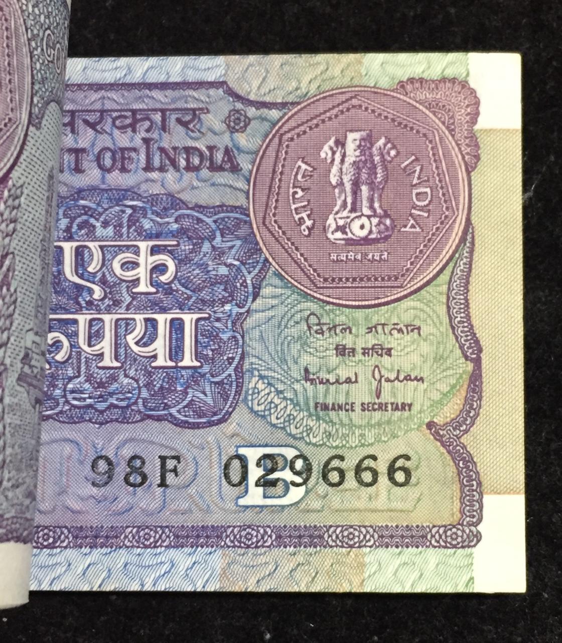 1990 ONE RUPEES GOVERNOR BIMAL JALAN RARE SERIAL PACKET