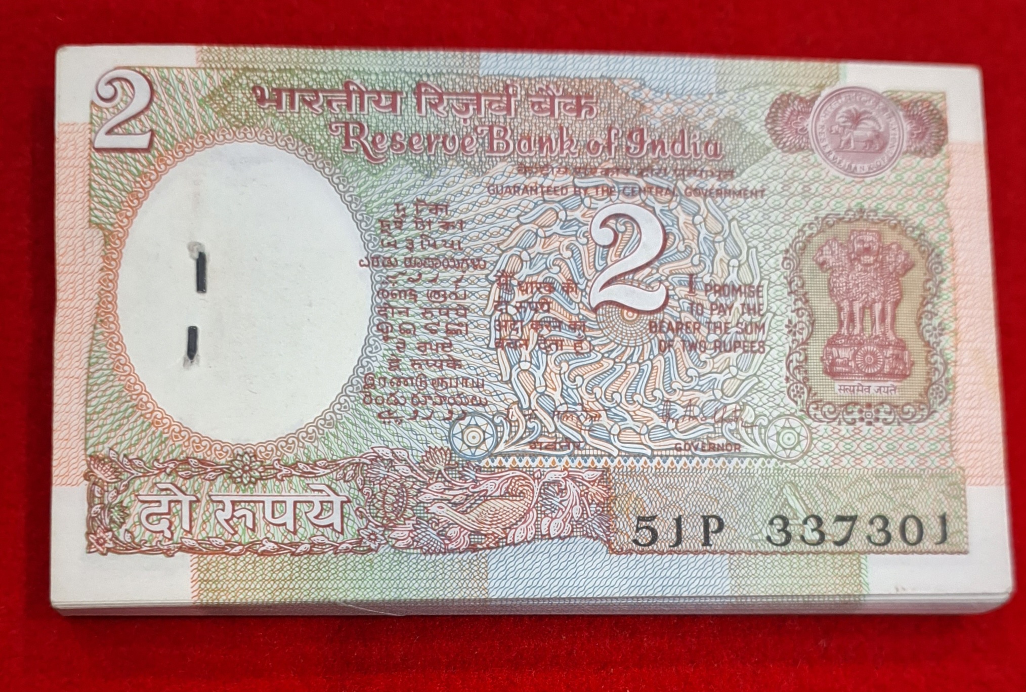 2 RUPEE PACKET R.N. MALHOTRA DOUBLIE NO. 337337 SERIAL NO. 51P 337301