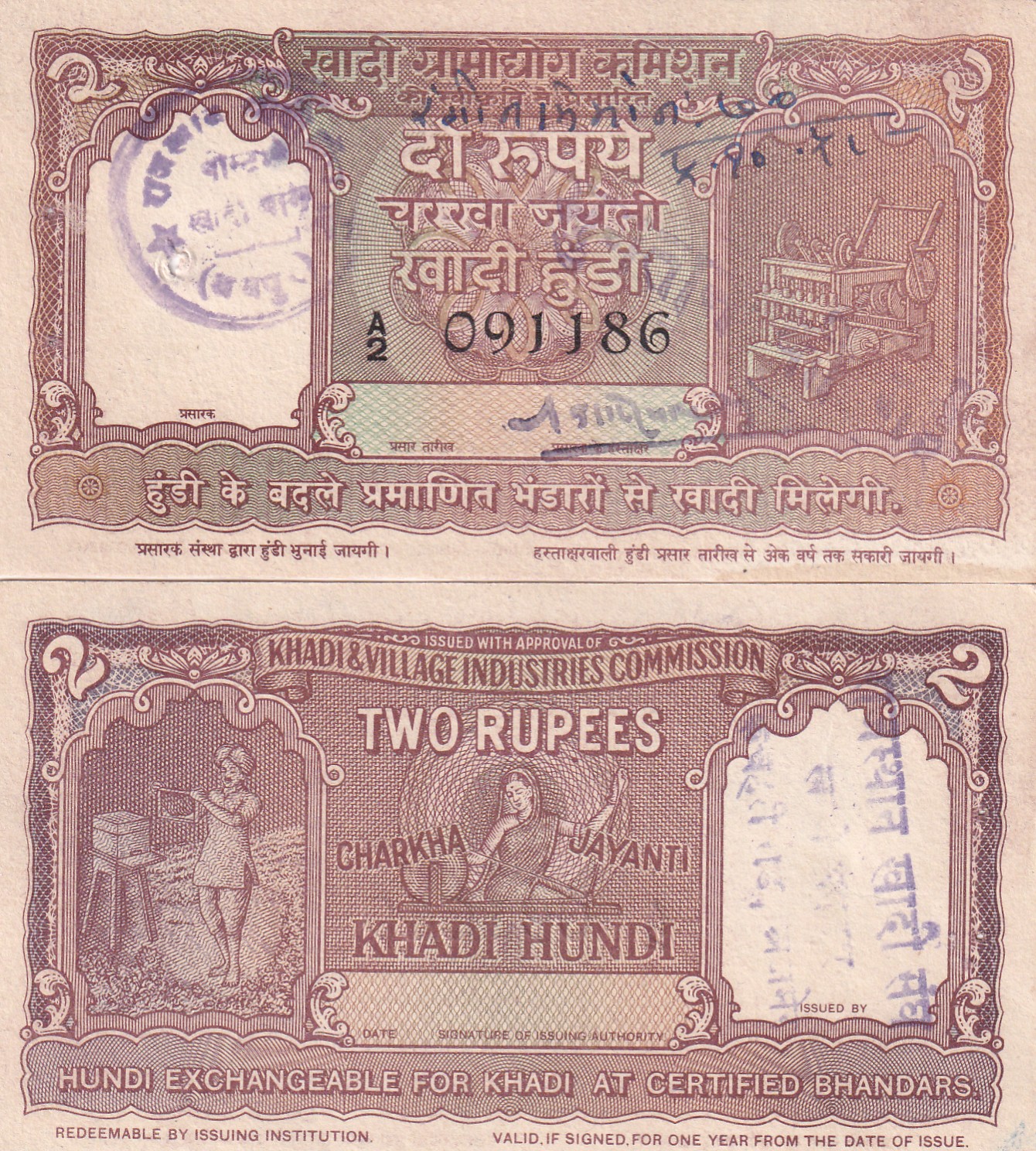 2 Rupees Khadi Charkha Hundi old 100 % Original