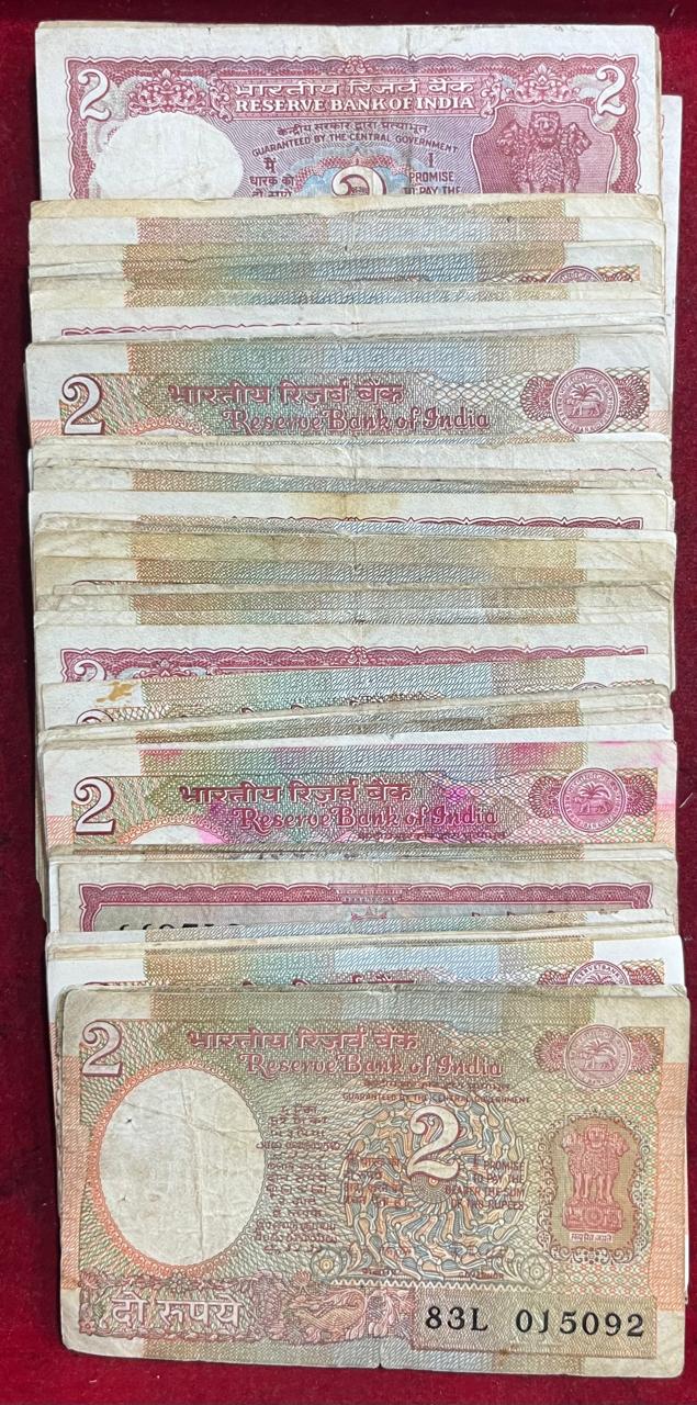 2 RUPEES MIX GOVERNOR (100 PCS LOTT) MIX CONDITION RARE NOTE #SKU-46
